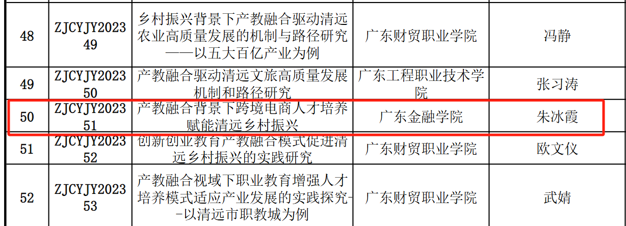 在2023年度清远市产教融合社科课题评审工作中,广东金融学院国产欧美日韩在线观看朱冰霞老师荣获立项。朱冰霞老师负责的项目名为“产教融合背景下跨境电商人才培养赋能清远乡村振兴”(项目编号为ZJCYJY202351)”,该项目旨在探索通过产教融合、协同育人的形式,培养跨境电商人才从而促进清远乡村振兴。该项目可为产教融合背景下进行职业教育和产教融合路径提供参考,该模式下的跨境电商人才培养也为跨境电商教学改革、地区乡村振兴提供新的视角。