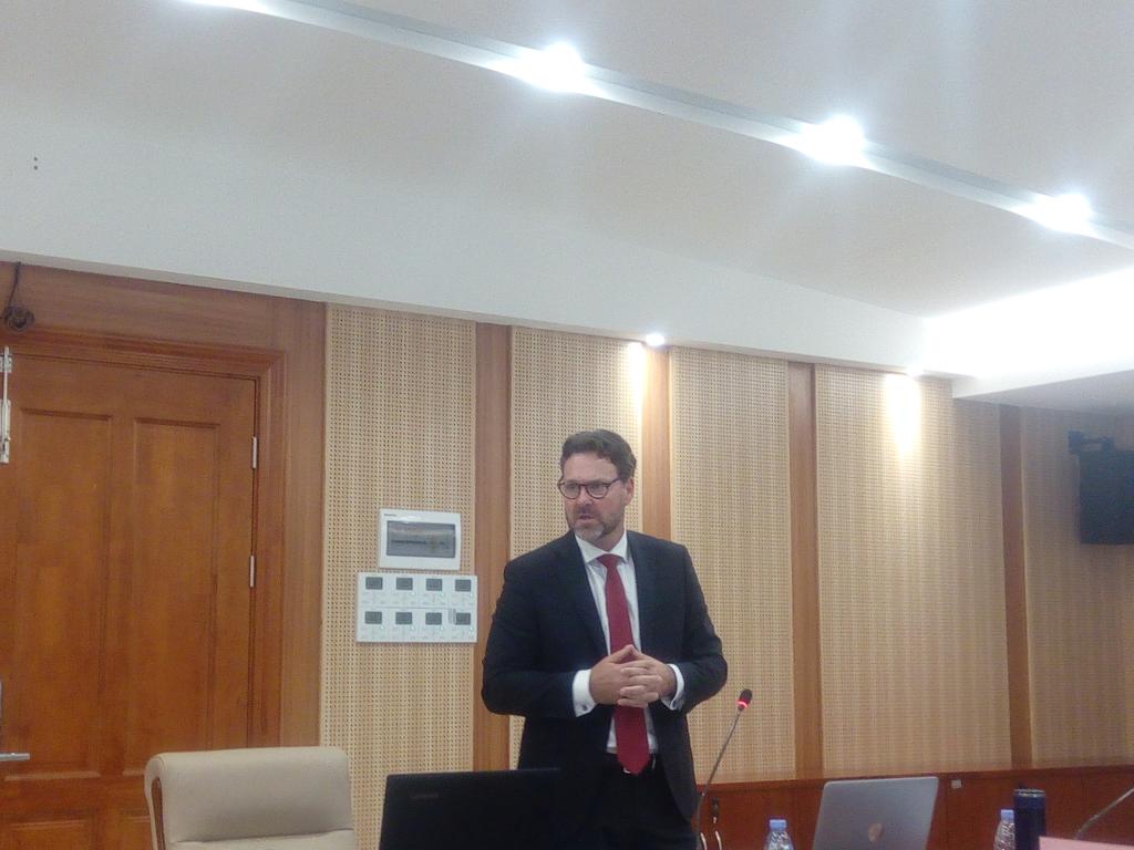 田兵的主旨报告题为“The Design Features of Le Grand Dictionnaire Chinois-Français Contemporain (Huang 2014): in Comparison with MCD-6 (2012) and CED-3 (2010)”【《汉法大词典(黄建华2014版)》编纂设计特色研究:与《现代汉语字典(第六版)》( 2012)》和《汉英字典(第三版》)( 2010)》比较)”】,田兵分析概述了该词典的主要特点和贡献。