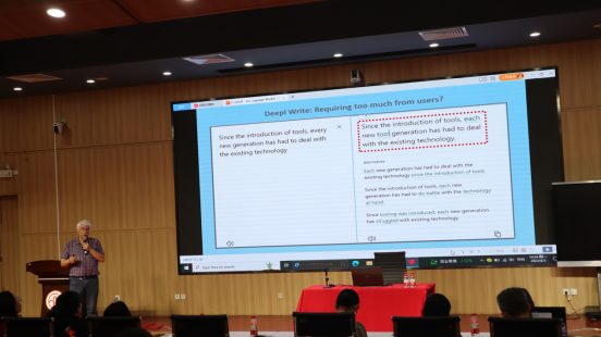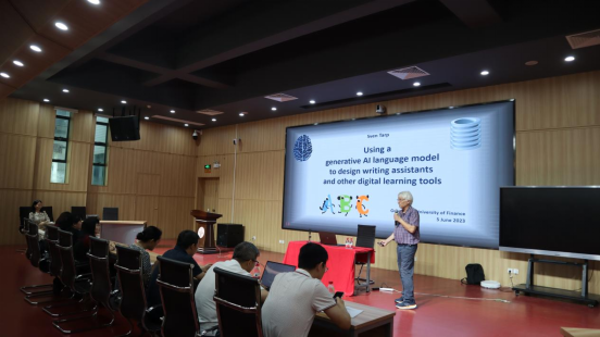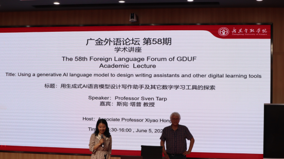 2023年6月5日下午,国产欧美日韩在线观看于北教103教室举办了第58期广金外语论坛。此次论坛邀请了国际著名词典学专家丹麦奥胡斯(University of Aarhus)大学的词典学中心主任Sven Tarp(斯宛·塔普)教授,为外文学院的师生带来一场题为“用生成式AI语言模型设计写作助手及其他数字学习工具的探索”的学术讲座。外文学院副院长洪溪珧副教授主持了此次论坛,学院领导和师生代表共同出席了本次讲座。