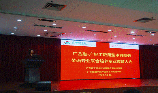 2020年10月16日,广东金融学院外文学院-广东轻工职业技术学院应用型本科商务英语专业联合培养专业教育大会暨教学研讨会在广东轻工职业技术学院第二实训楼903室隆重举行。