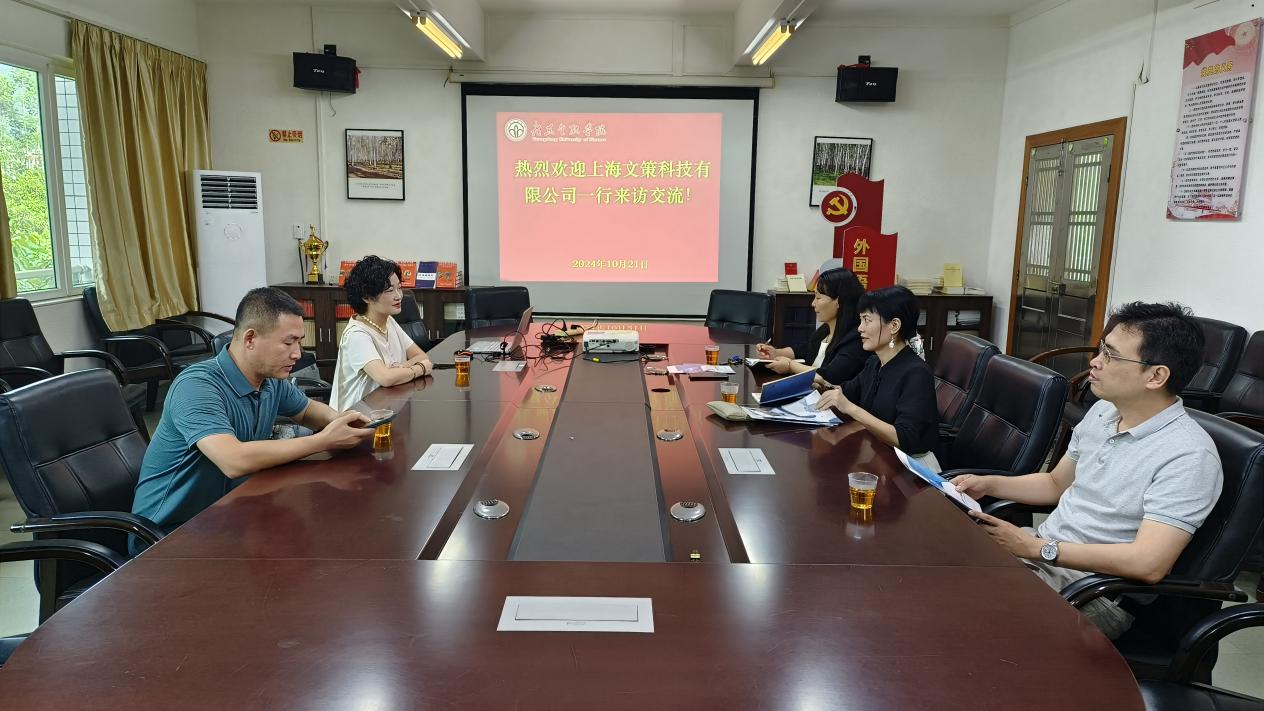 10月21日下午,上海文策科技有限公司的吴蓓总经理和刘向君经理一行来访国产欧美日韩在线观看,双方就校企合作事宜进行了深入的交流与探讨,旨在共同推动翻译教育与科技产业的融合发展。涂兵兰院长、洪溪珧副院长和陈树坤副院长参与活动。