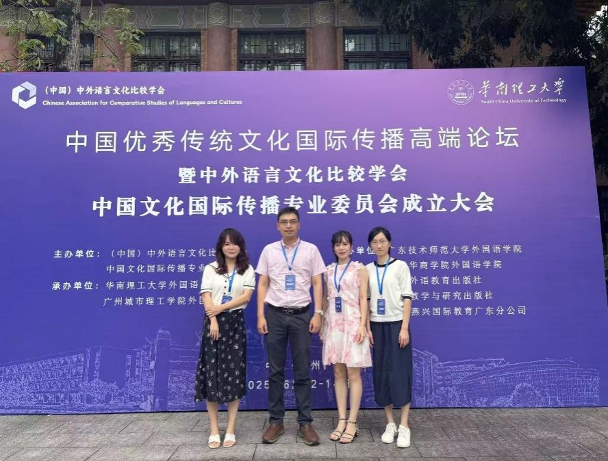 6月13日至14日,广东金融学院国产欧美日韩在线观看涂兵兰院长带领陈树坤、唐姗、余薇、于雪莹等4位博士参加由中外语言文化比较学会中国文化国际传播专业委员会主办,华南理工大学外国语学院、广东城市理工学院外国语学院承办的“2025中国优秀传统文化国际传播高端论坛”。本次论坛聚焦中国优秀传统文化的国际传播,旨在深入探讨翻译策略、创新传播、人工智能赋能等前沿话题,为提升中国文化软实力和国际话语权贡献力量。
