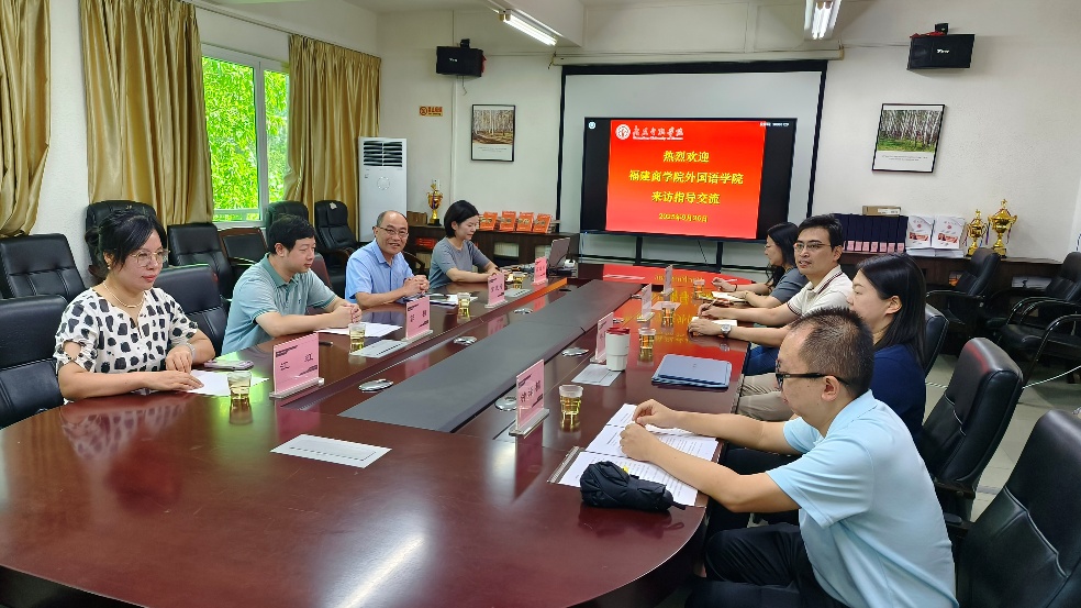 9月26日上午,福建商学院外国语学院副院长童成寿率教研室主任薛禾、教师郭桓、江虹一行四人莅临国产欧美日韩在线观看,就外语类专业建设与人才培养开展深度交流。我院副院长陈树坤、副书记王丹、英语系主任毕亚男、商务英语系副主任钟泽楠出席座谈会。