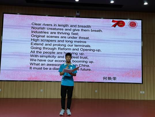 颁奖礼上还举行了生动活泼的获奖作品朗诵会,通过学生们现场朗诵获奖作品,表赤子之心,抒爱国情怀,充分展现此次诗歌征文大赛的成果。