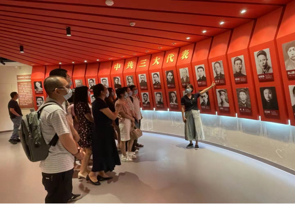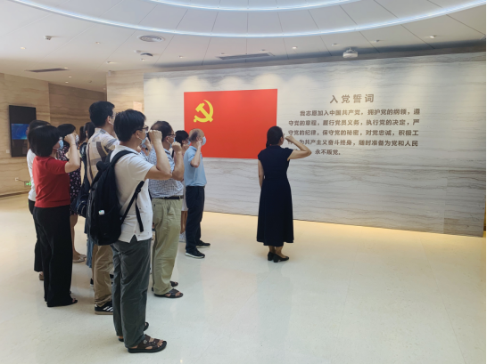 活动首先由黄晓莉书记带领全体党员在党旗下重温入党誓词。当大家再次举起右拳、庄严宣誓时,责任感和自豪感油然而生。重温入党誓词后,全体参观人员进入中共三大会址纪念馆参观。在参观过程中,大家仔细观看了大量的历史图片资料、文物、模型以及革命先驱人物的硅胶像场景等,重温了中共三大召开的历史背景和党的光辉历史,再次感受中共三大重大的历史意义。