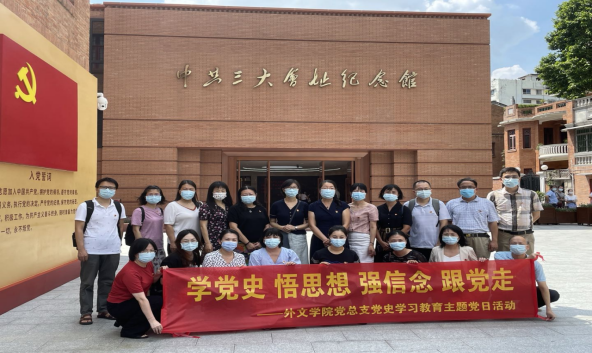 9月7日下午,外文学院党总支组织师生党员一行35人参观了广州革命优良传统教育基地——中共三大会址纪念馆。本次活动旨在重温我党的发展历程和艰苦奋斗岁月,学习党的十九大精神,不忘初心、牢记使命,结合党史学习教育,“学党史 悟思想 强信念 跟党走”。
