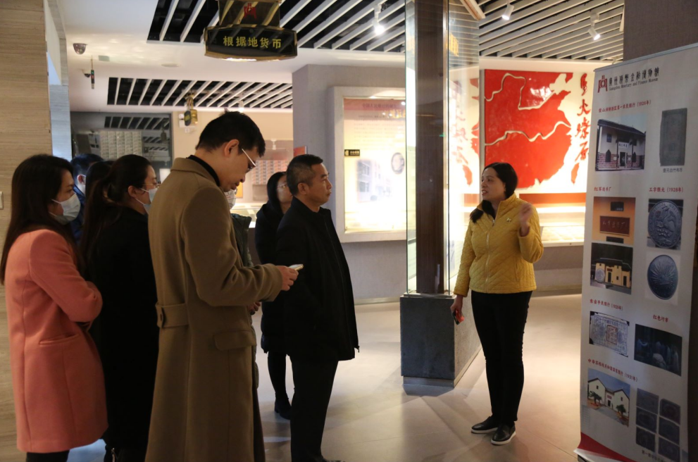 沿着历史轨迹,中心组分别参观了中国古代货币区、民国时期货币区、根据地货币区、新中国货币区和世界货币区等展馆。期间,馆长刘志梅从中国共产党领导下的金融发展史的视角出发,结合新民主主义革命时期的重大历史事件,为我们讲述了红色货币的发行机构、流通范围、币值种类、假币鉴别等知识,系统梳理了红色金融从萌芽、发展、壮大到走向统一的历史过程,展现了党的金融事业支持革命战争、应对风险挑战、维护国泰民生、夯实新中国金融发展基石的历史事实。大家都深深地被这种星星之火、可以燎原的红色金融精神所感动。