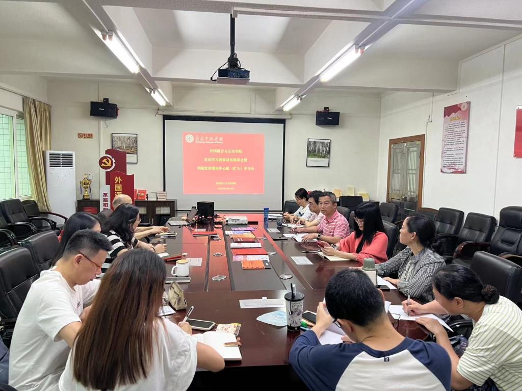 4月19日,国产欧美日韩在线观看在学院会议室召开党纪学习教育动员部署会暨学院党委理论学习中心组学习会,深入学习贯彻习近平总书记关于党纪学习教育和全面从严治党的重要讲话、重要指示精神,贯彻落实中共中央办公厅印发《关于在全党开展党纪学习教育的通知》精神和《中共广东金融学院委员会党纪学习教育实施方案》的通知要求,部署外文学院党纪学习教育工作。外文学院党政班子成员、党委委员、党委理论学习中心组成员、各党支部书记及党支部委员参加会议。会议由学院党委书记黄庆雄主持。