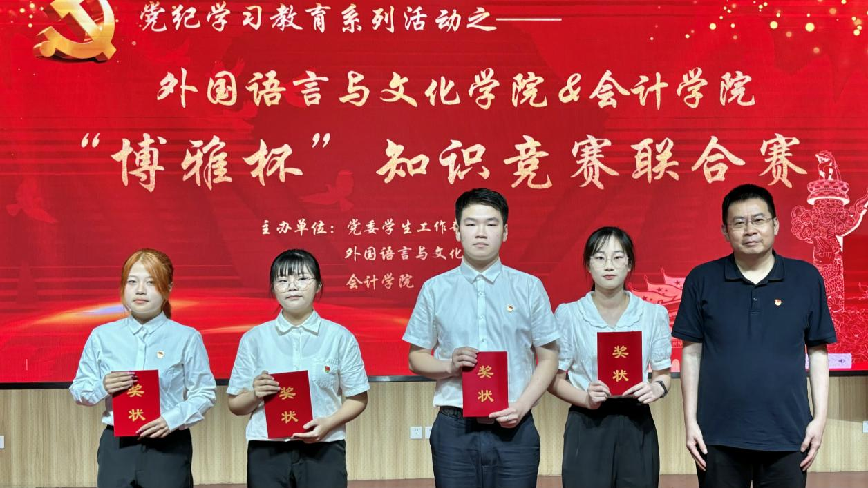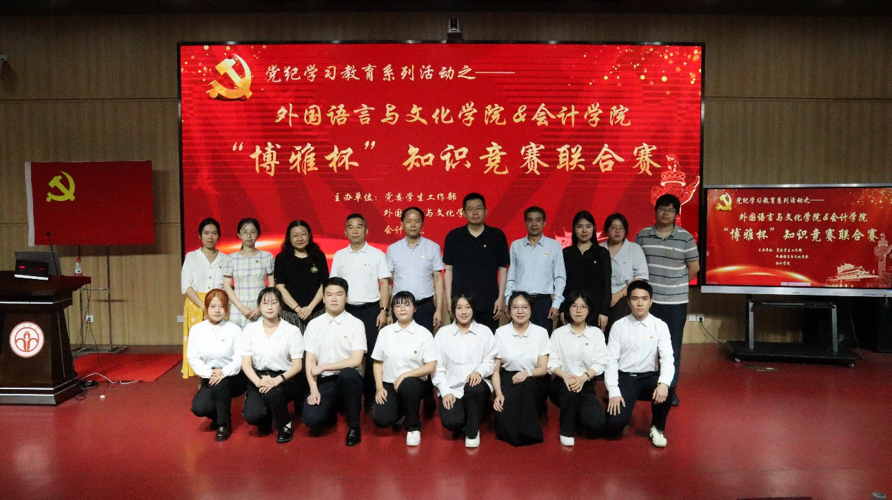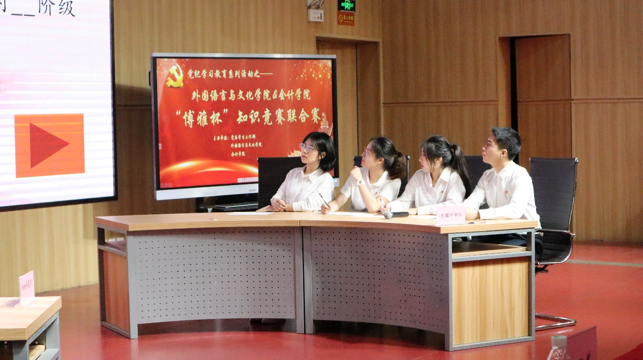 为创新党纪学习教育形式、推动党纪学习教育走深走实。5月28日,国产欧美日韩在线观看和会计学院学生党支部在北阶103思政演播厅联合举办“博雅杯”知识竞赛。学校党委委员、组织部部长黄培雄、党委学生工作部副部长聂国泉、会计学院党委书记赖志成、国产欧美日韩在线观看党委书记黄庆雄、副书记王丹和双方学院学生党支部书记及国产欧美日韩在线观看全体辅导员参加了活动。
