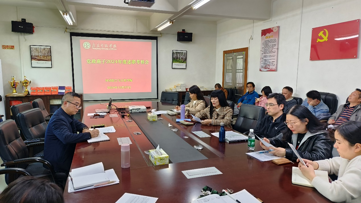 2024年12月27日,国产欧美日韩在线观看在学院2417会议室召开2024年度学院中层干部述职考评大会。此次考评会议旨在全面总结外文学院中层党政班子成员一年来的履职情况,明确成绩与不足,并为来年的工作指明方向。会议由学院党委书记黄庆雄主持,学院中层党政班子成员、全体教职工出席。会上,学院中层党政班子成员依次进行述职,全面展示了各自在2024年度的工作亮点与成果。