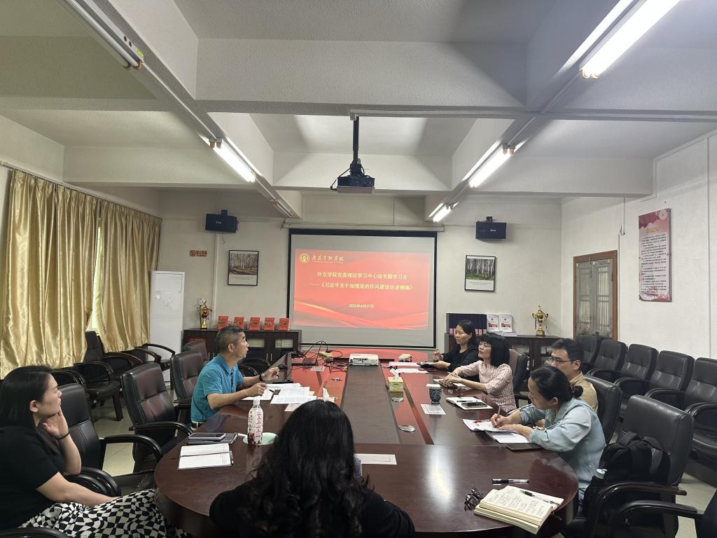 会上,学院党委书记黄庆雄领学《习近平关于加强党的作风建设论述摘编》相关内容并对中央八项规定和中央八项规定精神的核心要义进行了区分解读。中心组成员涂兵兰院长、陈树坤副院长、洪溪珧副院长和王丹副书记等通过对材料学习研读并结合个人自己分管工作实际作交流发言。
