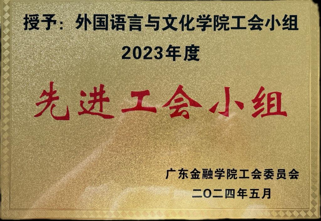 喜报:在2023年度广东金融学院先进工会小组评选活动中,外文学院工会凭借在各类赛事和活动中的卓越表现,再次荣获“先进工会小组”荣誉称号。