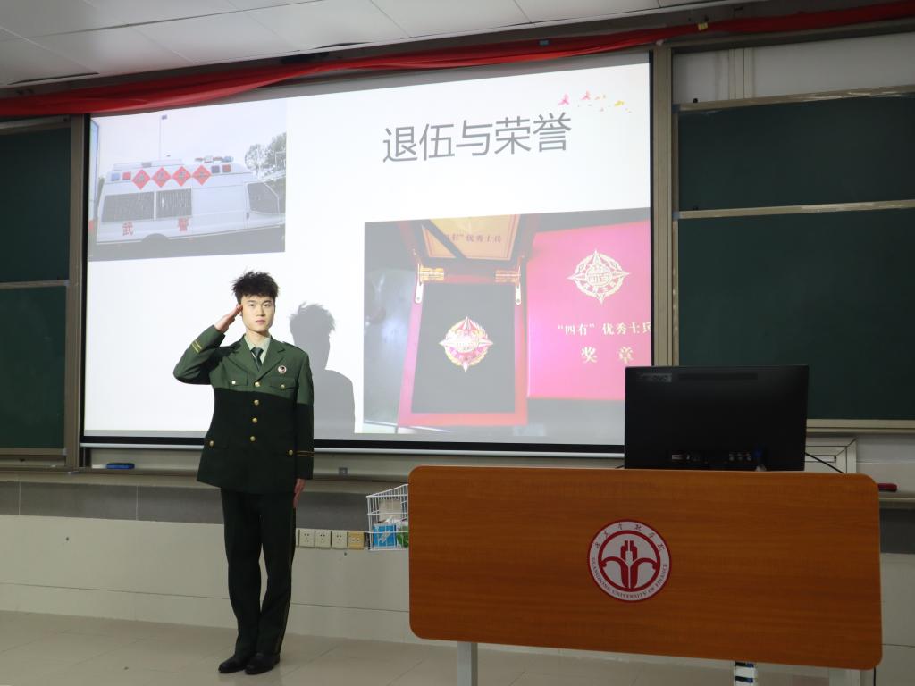 紧接着,学校党委武装部肖军老师以“什么样的大学生最适合参军入伍”为切入点,一一解读了大学生征兵入伍的流程、国家和各地市的政策,为同学们打消疑虑,解除后顾之忧。