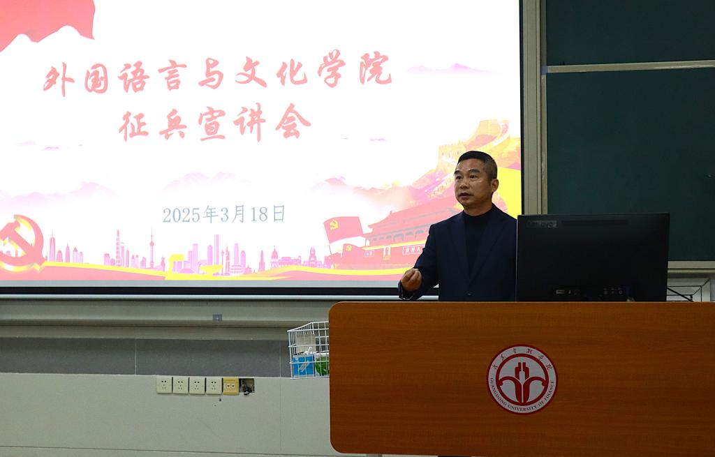 为号召有志青年响应祖国号召,踊跃报名参军,3月18日下午,国产欧美日韩在线观看面向2022级全体男生和部分女生代表召开了2025年春季征兵宣讲会。外文学院党委书记黄庆雄、副书记王丹,学校党委武装部肖军老师,外文学院辅导员孙嘉程、邓伟琦出席了会议。