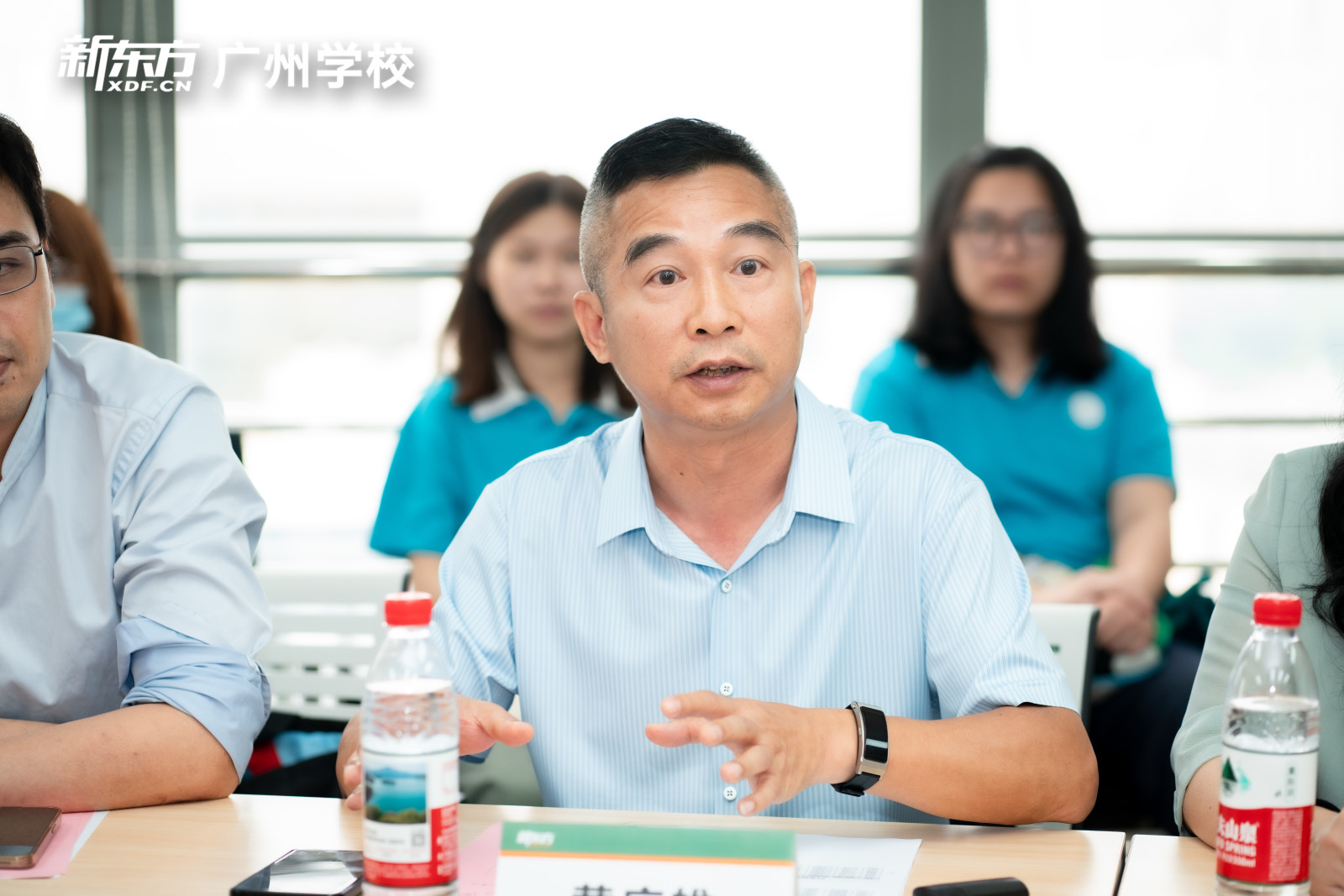 外文学院党委书记黄庆雄代表学院对新东方长期以来对学校的支持表示感谢。他介绍了广东金融学院及外文学院的发展历程、办学特色、学科优势及人才培养成果。他指出,开展访企拓岗行动是学校强化校企深度合作、提升人才质量、促进毕业生高质量就业的重要举措,外文学院将积极对接企业需求,为企业输送更多优秀人才。同时,从新东方教育科技集团的发展历程能感受到不仅是一家有高度且有温度的教育标杆企业,也展现出了新时代教育行业应有的责任担当和创新精神,无论是企业的教育板块、跨境电商还是文旅板块,跟广金外文学院所培养的学生高度契合,学院希望加强与新东方的交流协作,共建学生实习实训就业平台,提高学生就业竞争力,同时也助力新东方提前实现人才储备,实现校企共赢。