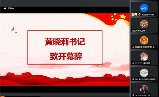 本次考研分享会在黄晓莉书记的致辞中拉开序幕,她首先代表学院对今年成功考取境内外研究生的学生表示祝贺,肯定了我院今年的考研成果。她表示,尽管今年疫情形势严重,18级的考研再创佳绩,这得益于学院的教风与学风建设。同时,她对外文学子表达了殷切期望,希望同学们可以借鉴考研成功的师兄师姐的经验,刻苦学习、夯实基础、坚定信念。