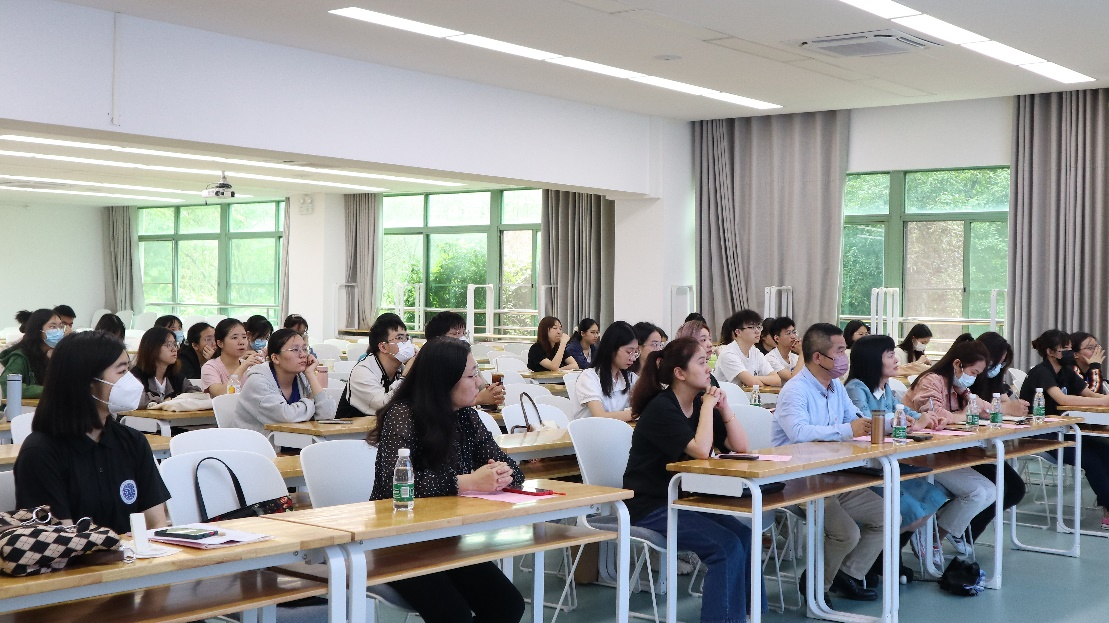 随后,4名2023届毕业生分别从考研流程、院校选择、学习规划、备考策略、就业选择等方面向同学们分享宝贵的个人经历。她们分别是上岸对外经济贸易大学英语口译专业的叶菁,分享了自己在专业选择、院校选择方面的经验;上岸华南师范大学学科英语专业的姚霖雯,介绍了在考研期间的学习资料和备考方法;上岸世界百强名校利兹大学的唐睿,建议同学们平时要提高听课质量,重视绩点的提高,积极参与各类实践和比赛活动,积累经验;考研虽未上岸但已成功入职的吴榮汾,分享了她的考研经历以及择业之路,完美地诠释了“人生道路不止一条,不断打磨自己和做好规划才是成长的必由之路”的道理。