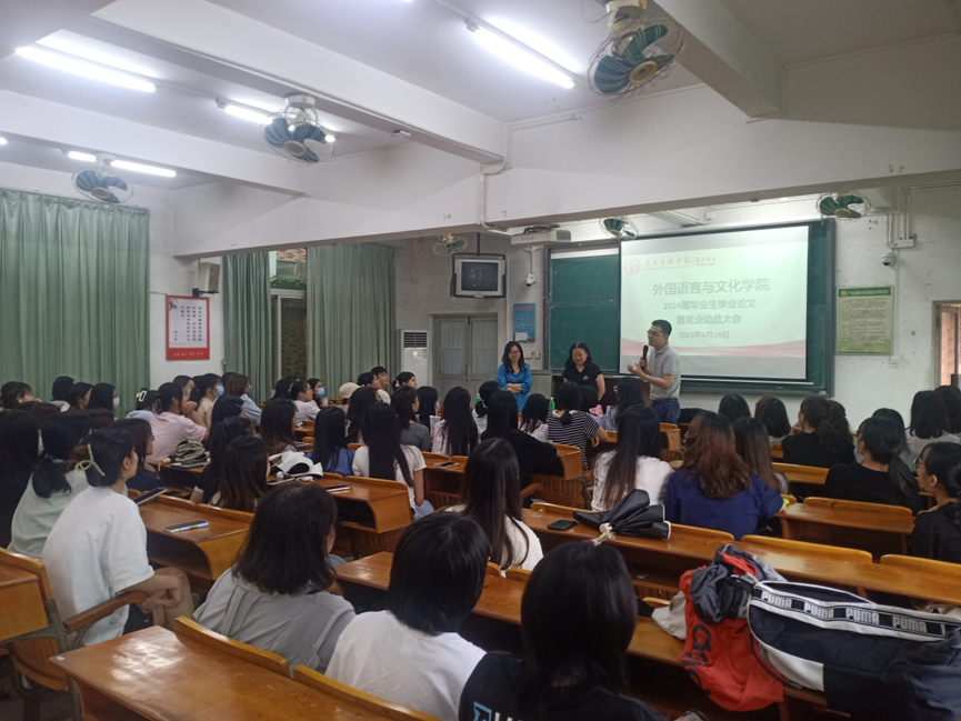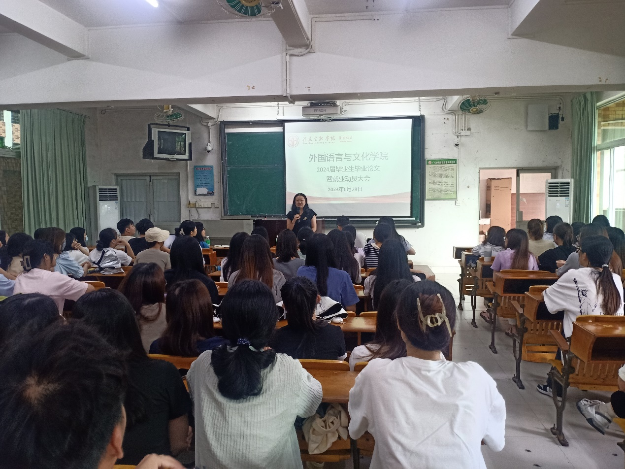 为引导毕业生顺利完成毕业论文,树立科学的就业观、择业观,成才观,帮助毕业生了解就业环境,做好就业规划,提高就业水平,稳步推进2024届毕业生实习就业工作,国产欧美日韩在线观看近日赴肇庆校区举办了2024届毕业生毕业论文暨就业动员大会。学院党总支副书记王丹,副院长陈树坤,辅导员朱香以及2024届商务英语专业全体同学参加会议。