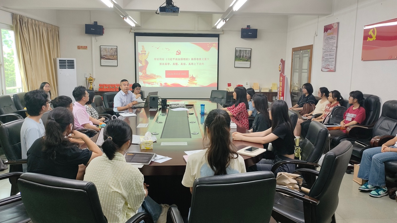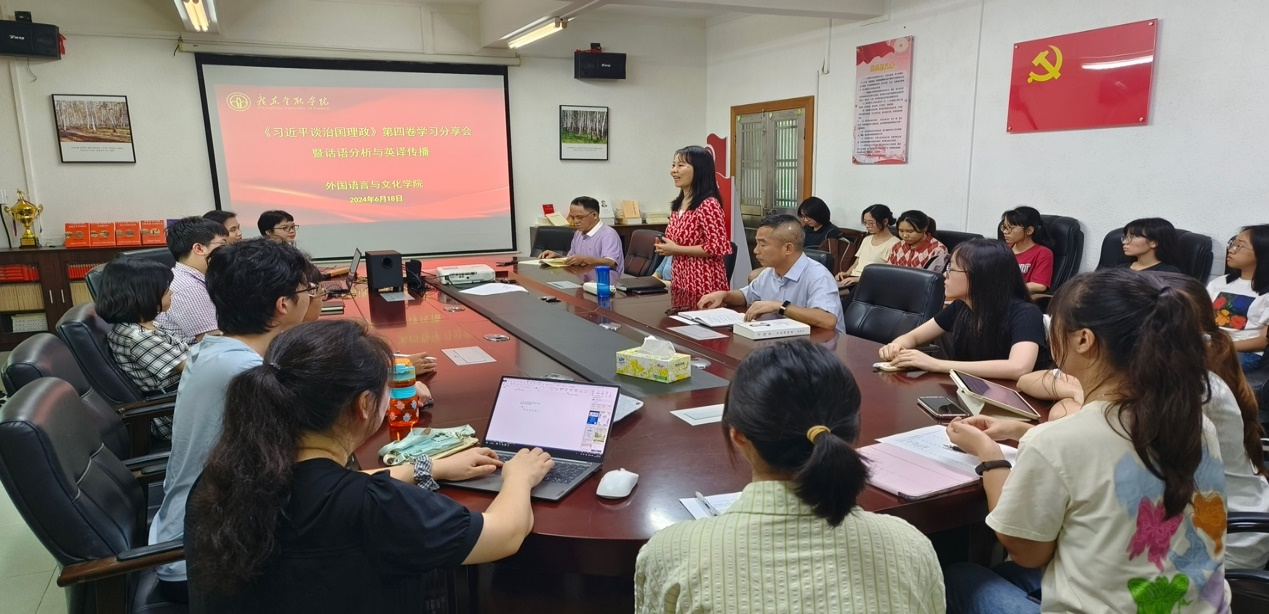 为深入学习贯彻习近平新时代中国特色社会主义思想,推动学院党建工作与学术科研同频共振,6月18日,国产欧美日韩在线观看党委举办了《习近平谈治国理政》第四卷学习分享会,就汉英译本的话语分析与译介传播问题展开了热烈讨论。学院党委书记黄庆雄、教工第二党支部书记陈树坤副院长、黄中习教授、洪溪珧、刘晓琴、温穗君、杨韵、孙嘉程等师生党员代表参加了此次会议。会议由副院长洪溪珧副教授主持。