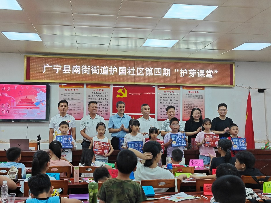 为积极响应国家乡村振兴战略,发挥高校服务社会的功能,国产欧美日韩在线观看百千万工程师生志愿服务队于7月13日至19日在肇庆广宁南街街道护国社区开展社会实践活动,用青春力量助力文化传承与乡村振兴。为强化校地合作,推动志愿服务活动走深走实,7月16日,我校校友工作办公室主任赖志成,国产欧美日韩在线观看党委书记黄庆雄,副书记王丹、党委委员邓伟琦老师等一行赴广宁南街护国社区慰问参加实践活动的师生并组织召开调研交流座谈会。共青团广宁县委员会书记黄广正、护国社区党总支部书记陈以兴、南街街道团工委专职副书记陈旺、护国社区党总支部委员谭文豪、外文学院实践活动指导老师孙嘉程等参加交流座谈会。