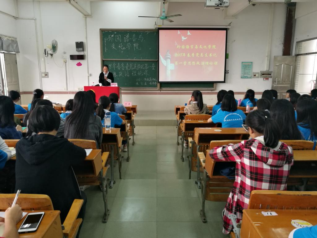 为加强同学们对十九大的认识,深化党员先进性对同学们的影响力,同时鼓励更多的同学向党组织靠拢,我院的党总支书记黄晓莉、院长黄中习,于2018年3月26日,在7栋教学楼的201、202课室,面向17级学生干部和16级入党积极分子,开展了2018年春季第一堂思想政治理论课。