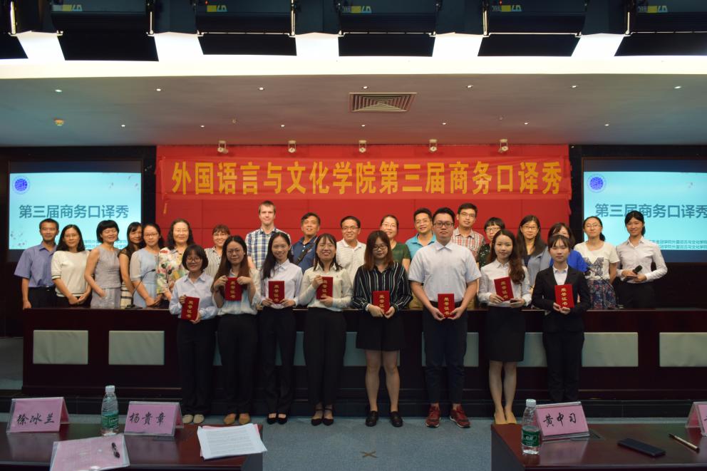2018年6月6日晚,国产欧美日韩在线观看第三届商务口译秀大赛在实验教学中心二楼学术报告厅隆重举行。本次大赛特邀外文学院院长黄中习、外文学院党总支书记黄晓莉、外文学院副院长王永霞、外文学院副院长孙智慧、外文学院党总支副书记李昌郴、部分专业老师以及外教老师担任嘉宾,同时,由专任老师担任本次大赛评委。
