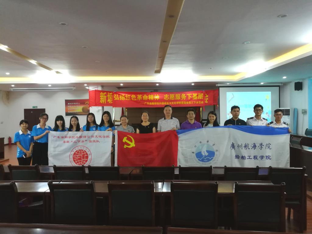 7月15日上午,国产欧美日韩在线观看党总支黄晓莉书记、李昌郴副书记、王丹老师与广州航海学院船舶工程学院党总支杨应华书记、刘楚老师、符志伟老师前往增城塘美小学慰问两校党员“三下乡”社会实践队队员。