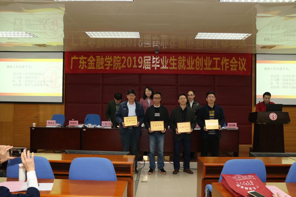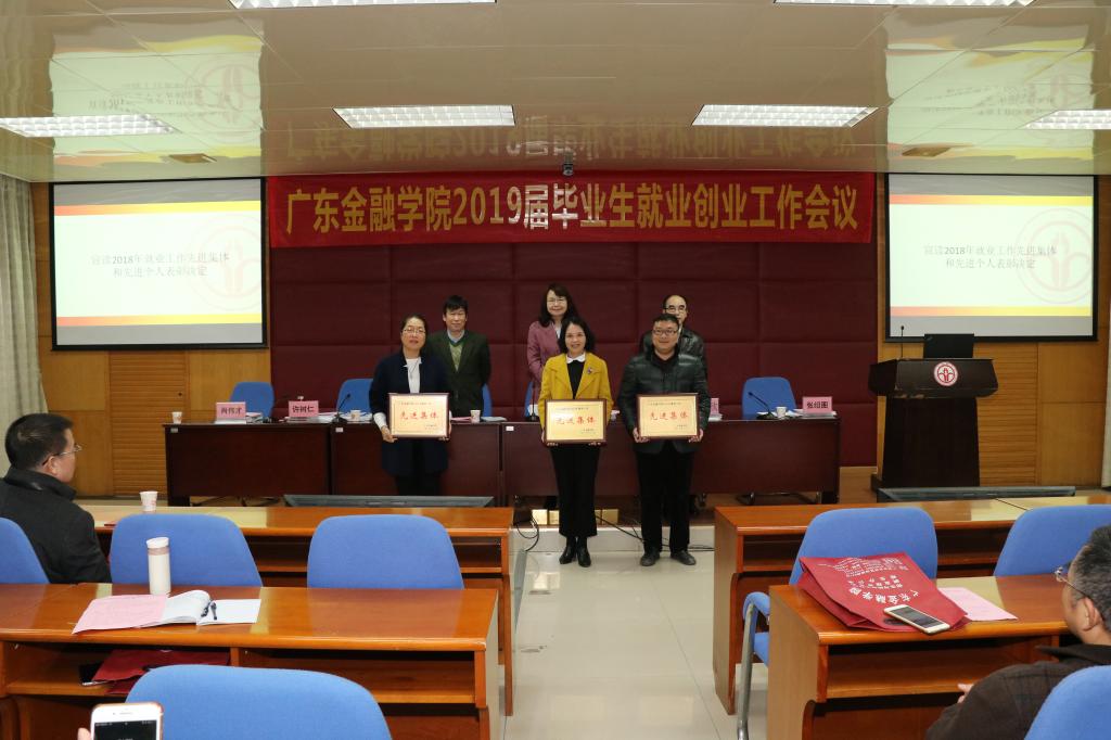 2019年1月8日下午,我校召开了广东金融学院2018届毕业生就业创业工作会议。会上,国产欧美日韩在线观看因就业工作成效显著被授予2018年“就业工作先进集体”荣誉称号;学院2018届毕业生辅导员陈坚获“就业工作先进个人”荣誉称号。在工作会议上,黄中习院长作为就业先进单位代表进行发言。