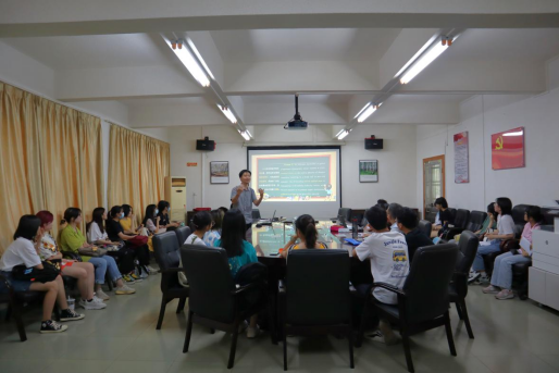 陈树坤老师进行了“译思研”教学模式成果的汇报,介绍了翻译专业教师的专著、译学论文,学生公开发表的论文等,阐述了我院今年考研成功人数比去年又更上一台阶,并提出了几点创新思想,以此展望未来。