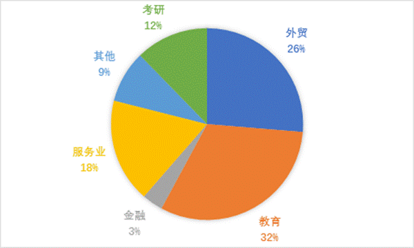 (4)专业综合应用能力:在国际贸易、教育、翻译(商务、金融经济等领域)、学术深造等领域运用所学专业的知识。