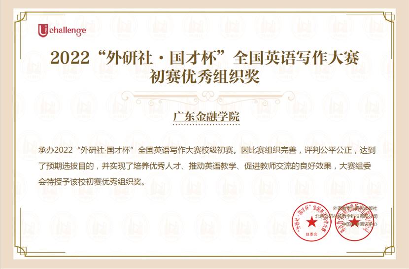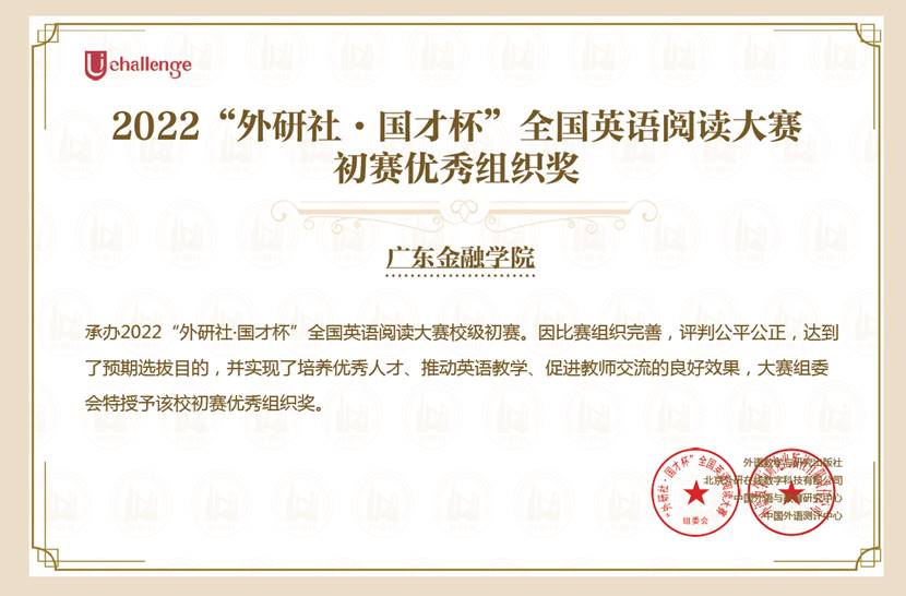 我院获得2022“外研社·国才杯”全国英语阅读写作大赛初赛优秀组织奖