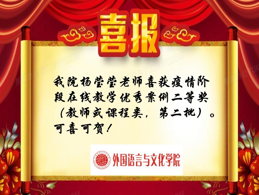 喜报:杨莹莹老师喜获疫情阶段在线教学优秀案例奖