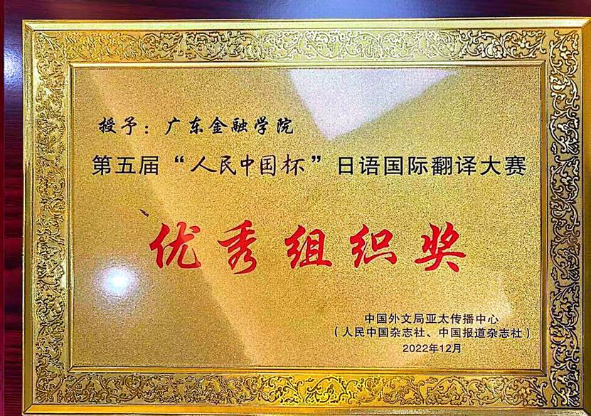 我院荣获第五届“人民中国杯”日语国际翻译大赛优秀组织奖