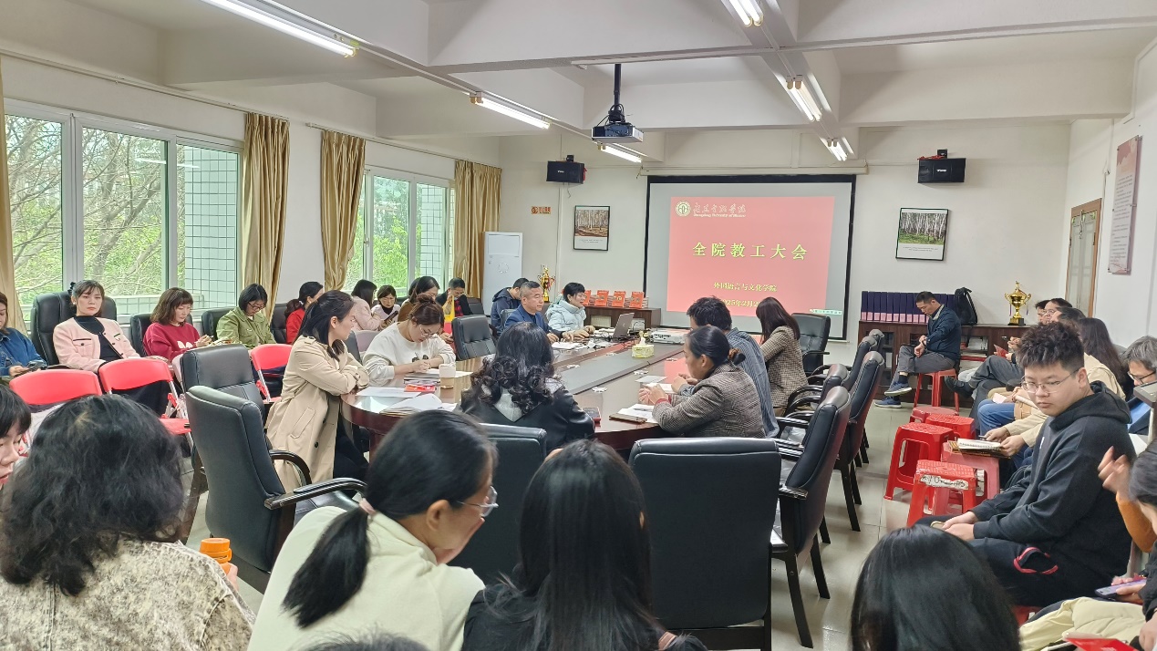 2月22日,国产欧美日韩在线观看召开了全院教工大会,会议旨在布置新学期工作,明确学院发展方向和目标。大会由黄庆雄书记主持,涂兵兰院长、陈树坤副院长、甘容辉副院长和洪溪珧副院长等学院领导出席,全体教职员工参加了此次会议。