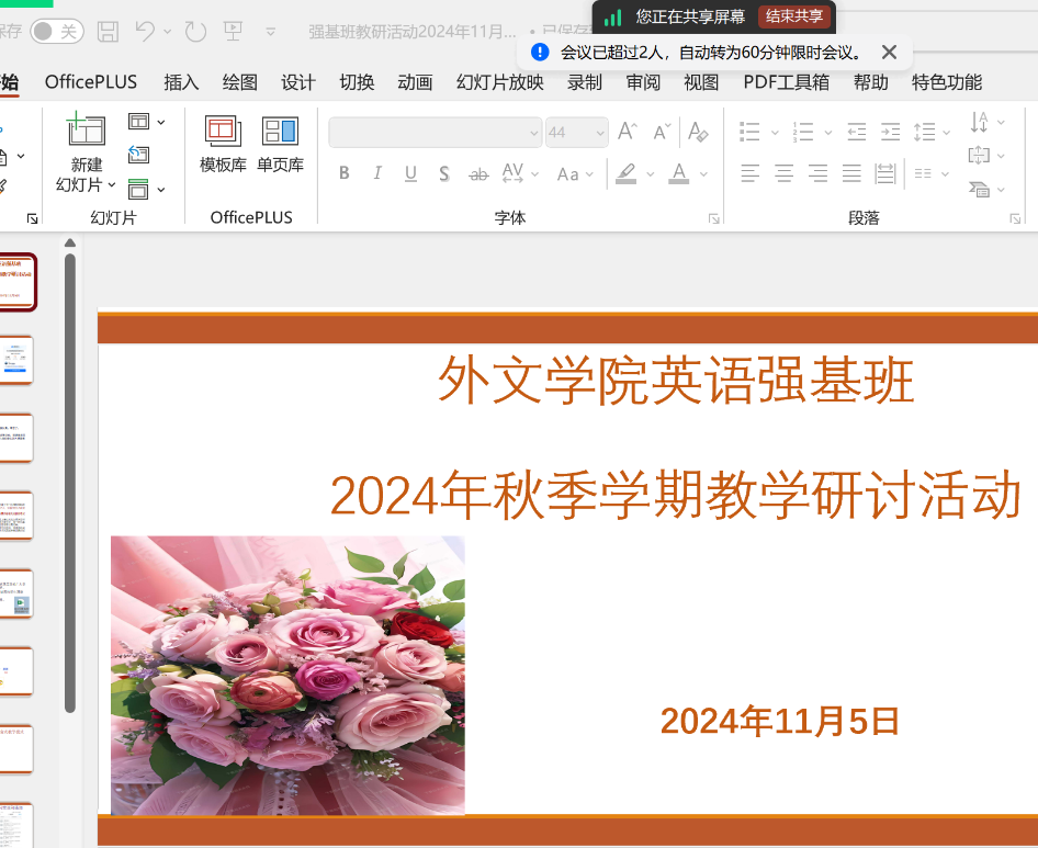 2024年11月5日,国产欧美日韩在线观看英语强基班教学研讨活动圆满举行。此次活动聚焦于强基班的教学要求、目标及未来发展蓝图,旨在进一步提升教学质量,满足学生个性化发展和升学、就业等多样化学习需求。外文学院院长涂兵兰、副院长甘容辉以及刘传江、王从遥、夏娟、李慕祺、魏渊渊、林颖姿等教师出席了本次研讨会。