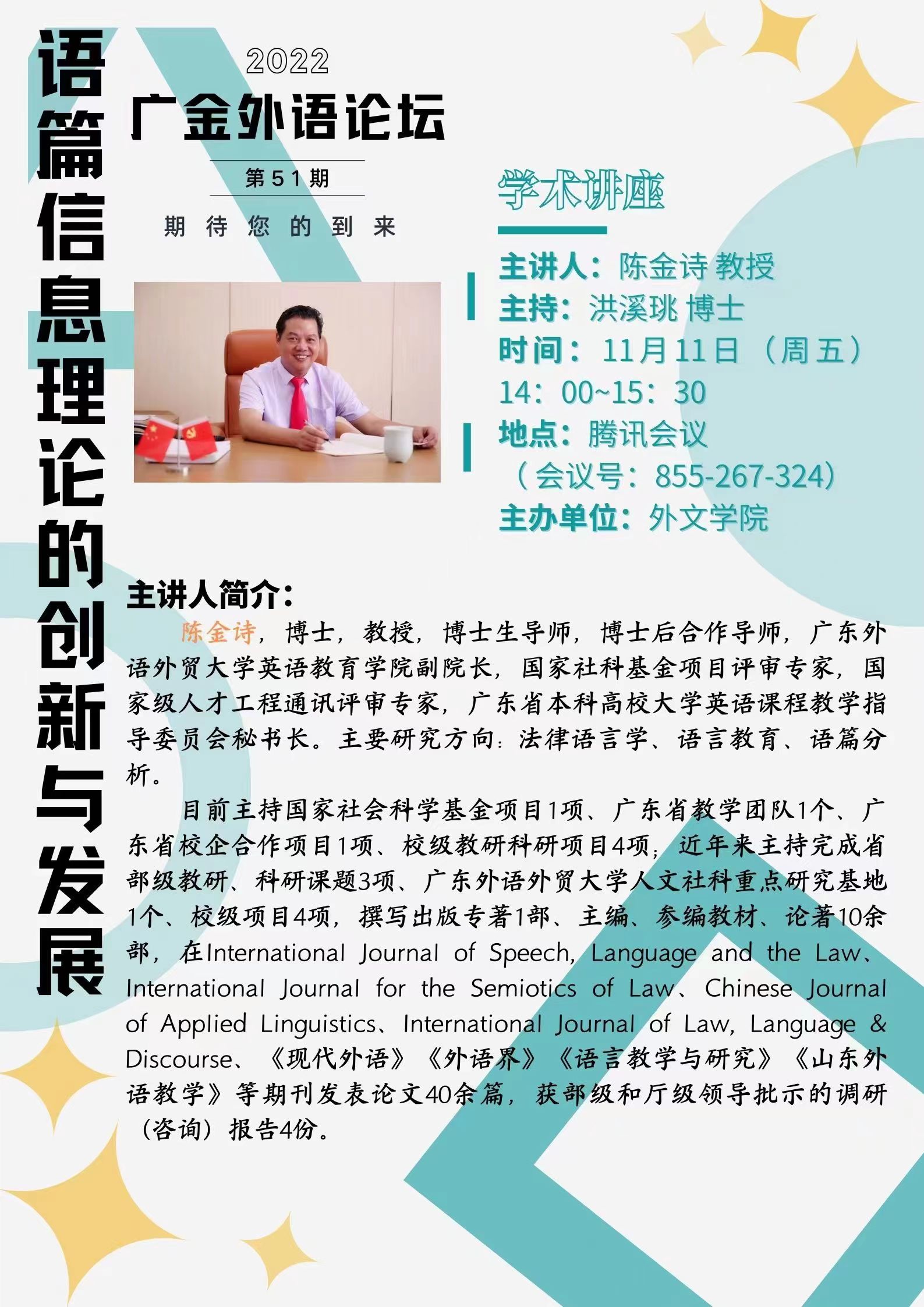 广金外语论坛第51期:语篇信息理论的创新与发展